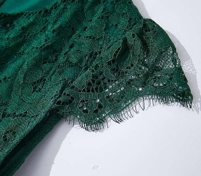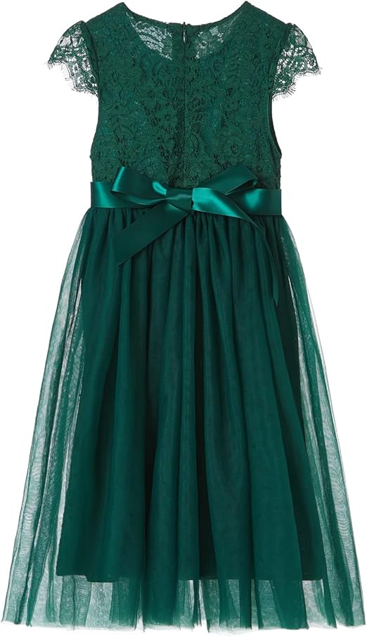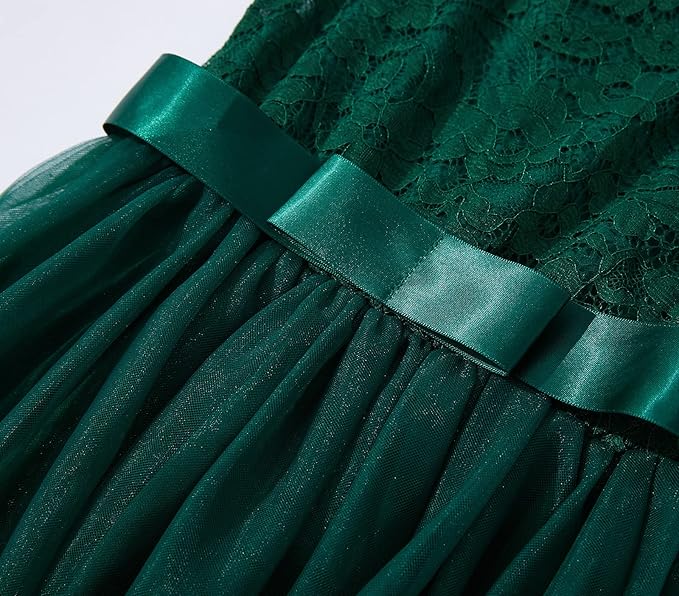 Dívčí dlouhé tylové šaty s krajkou Tm. zelené 7 let 130