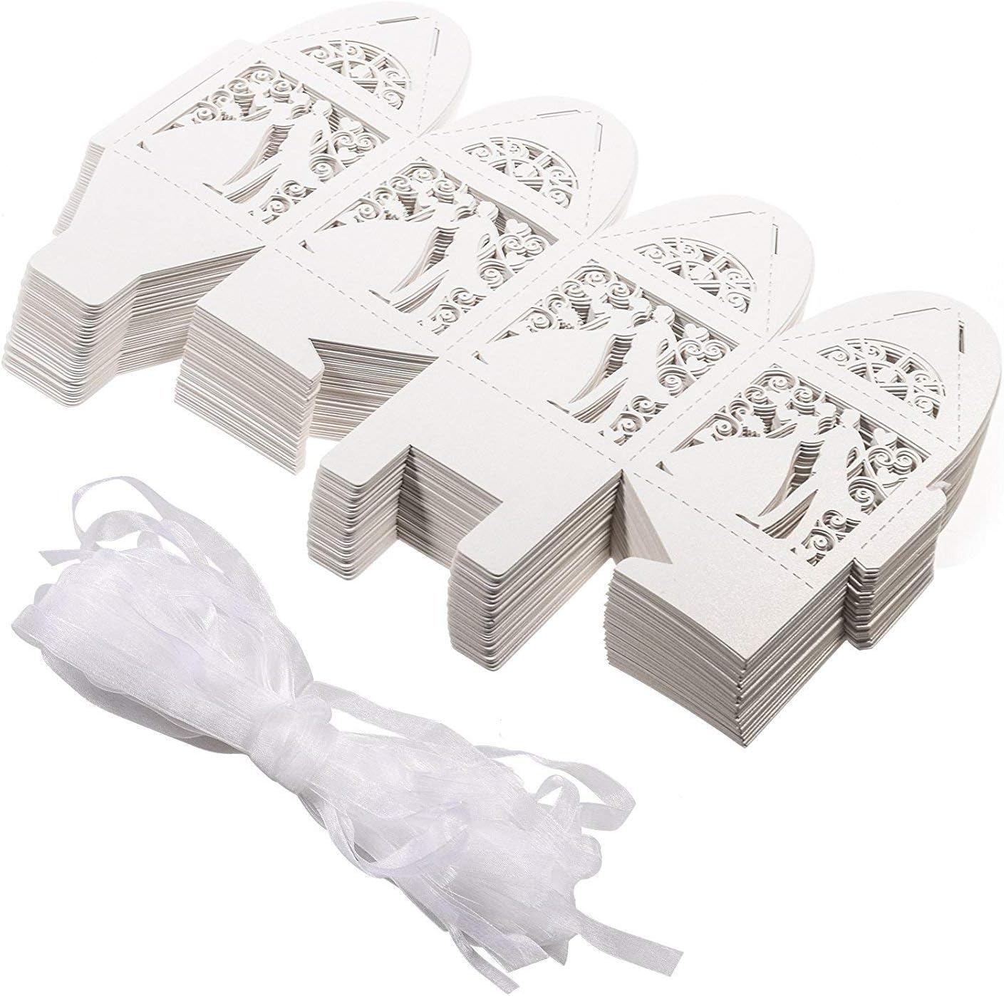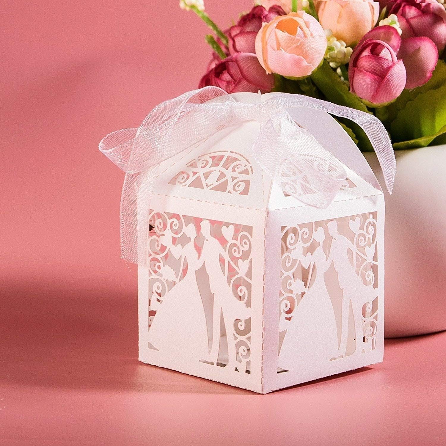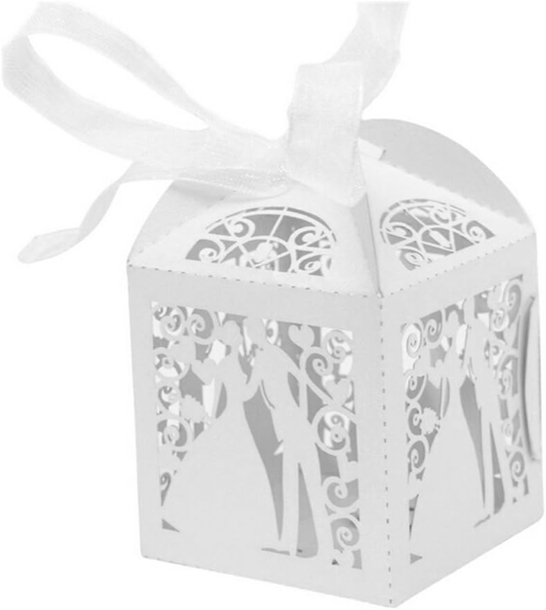 JinSu balení 50 bílých dárkových krabiček ženich a nevěsta