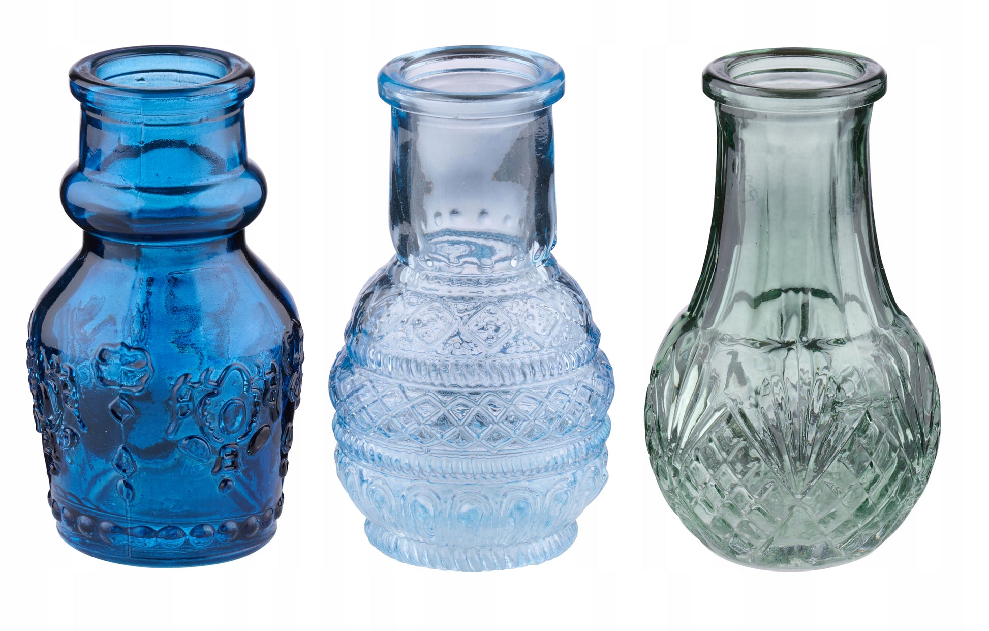 Skleněná malá váza 4x8 cm, sada 3 ks modrá